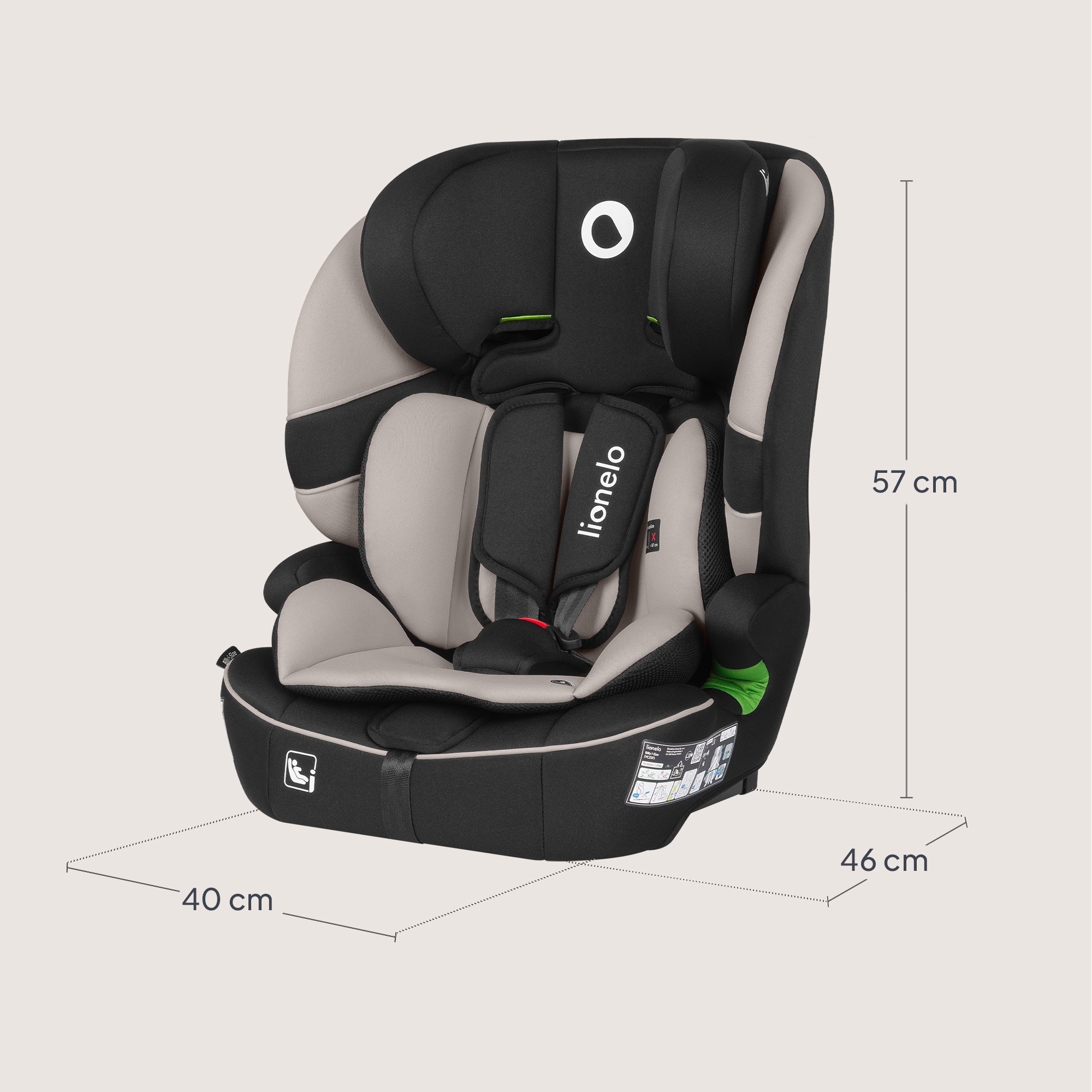 Scaun auto pentru copii Lionelo Billy Bej, i-Size, 76-150 cm, isofix + top tether, tetiera reglabila, testat la impact, conform cu R129