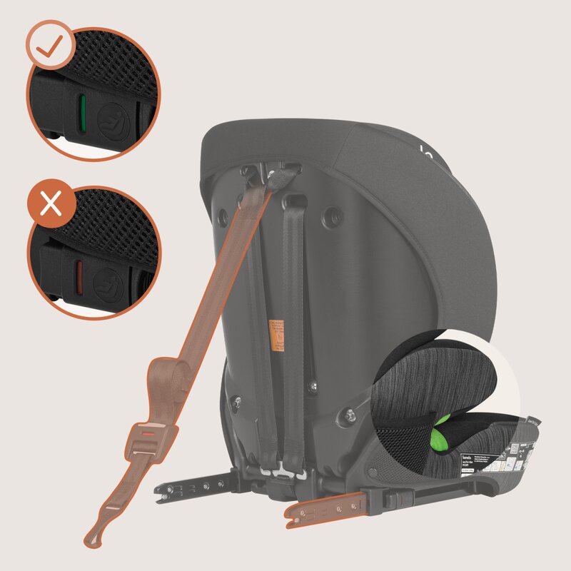 Levi Fix i-Size se instalează intuitiv, rapid și sigur. Pentru copiii mici (76–105 cm), se folosește Isofix + Top Tether și centura internă în 5 puncte. Pe măsură ce copilul crește (100–150 cm), scaunul poate fi utilizat fie cu Isofix + centura auto în 3 puncte, fie doar cu centura mașinii, ghidajele laterale asigurând poziționarea corectă a centurii.