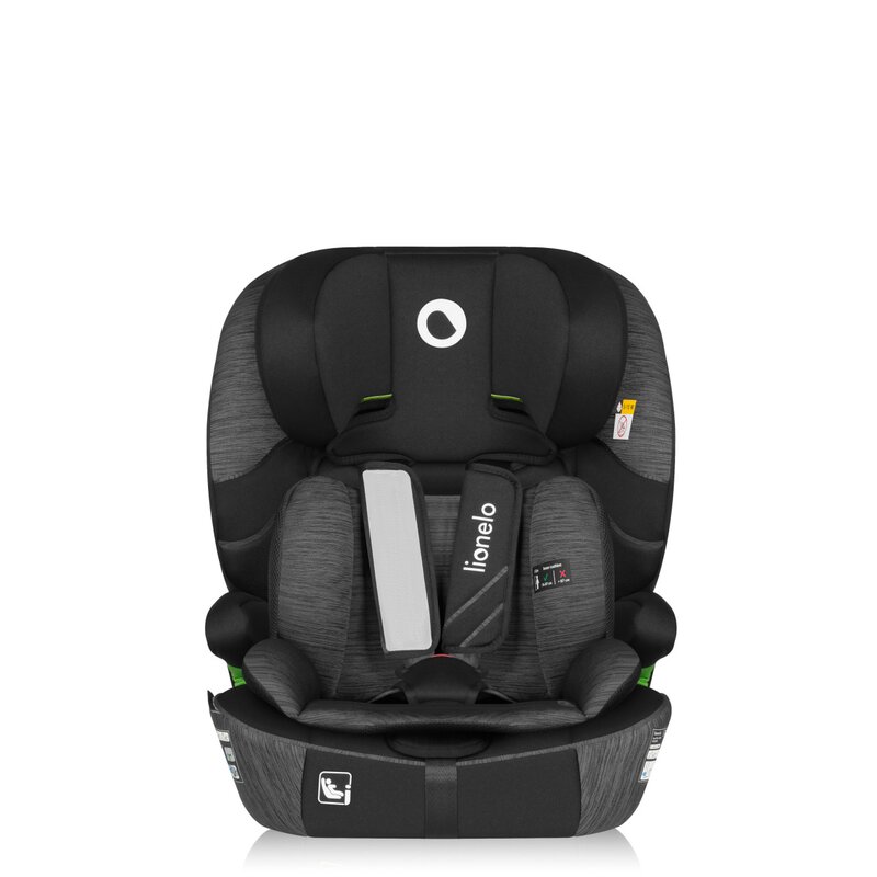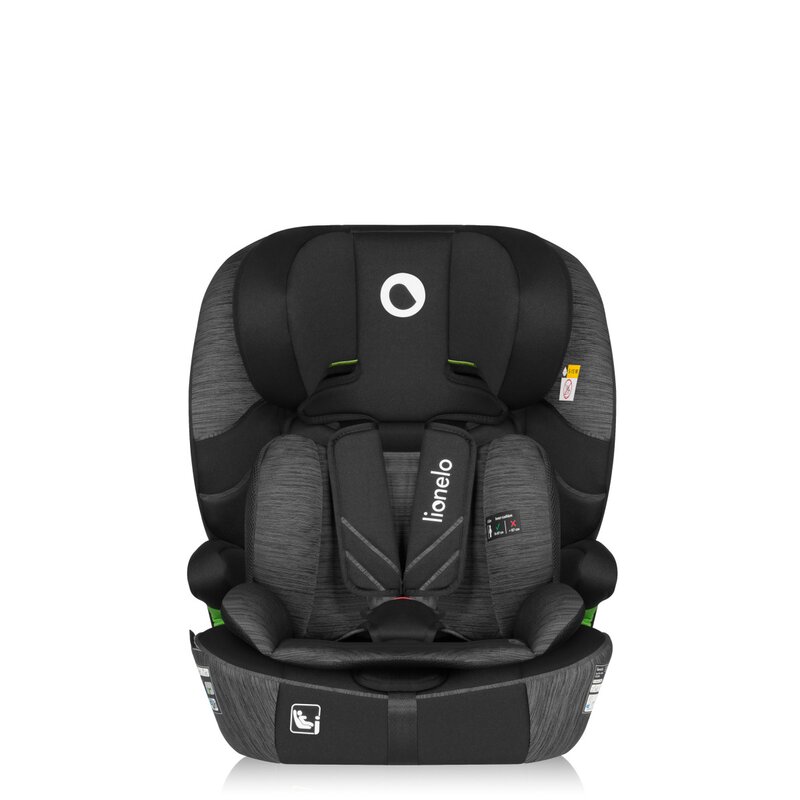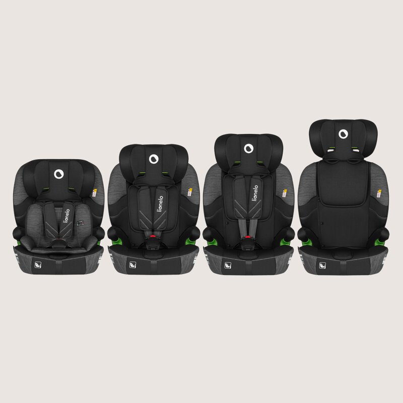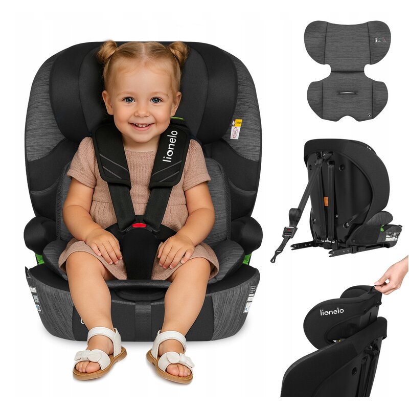 Scaun auto pentru copii Lionelo Levi Fix Negru/Gri, i-Size, 76-150 cm, 1/2/3, isofix + Top Tether, tetiera reglabila, testat la impact, conform cu R129