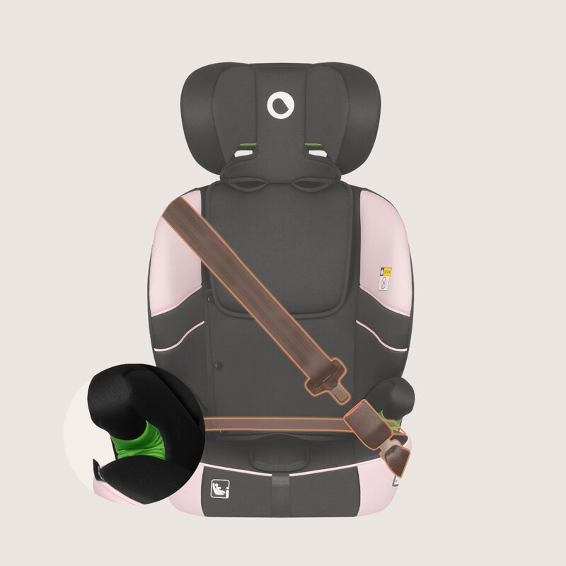 Scaun auto pentru copii Lionelo Levi Fix Roz, i-Size, 76-150 cm, 1/2/3, isofix + Top Tether, tetiera reglabila, testat la impact, conform cu R129