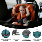 Scaun auto rotativ cu Isofix Coccolle Atira iSize R129, pentru copii de 40-150 cm sau 0-36 kg, Top Tether, Centuri in 5 puncte, Pozitie de somn, Tetiera reglabila, Carcasa ranforsata metalic, Cu spuma de memorie in 3 straturi, Cinnamon Brown