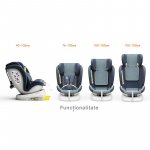 | Caracteristici Speciale: | Pozitie somn SPS Sezut rotativ 360 gr Spatar reglabil Tetiera reglabila Baza isofix I-Size Top tether Husa detasabila |