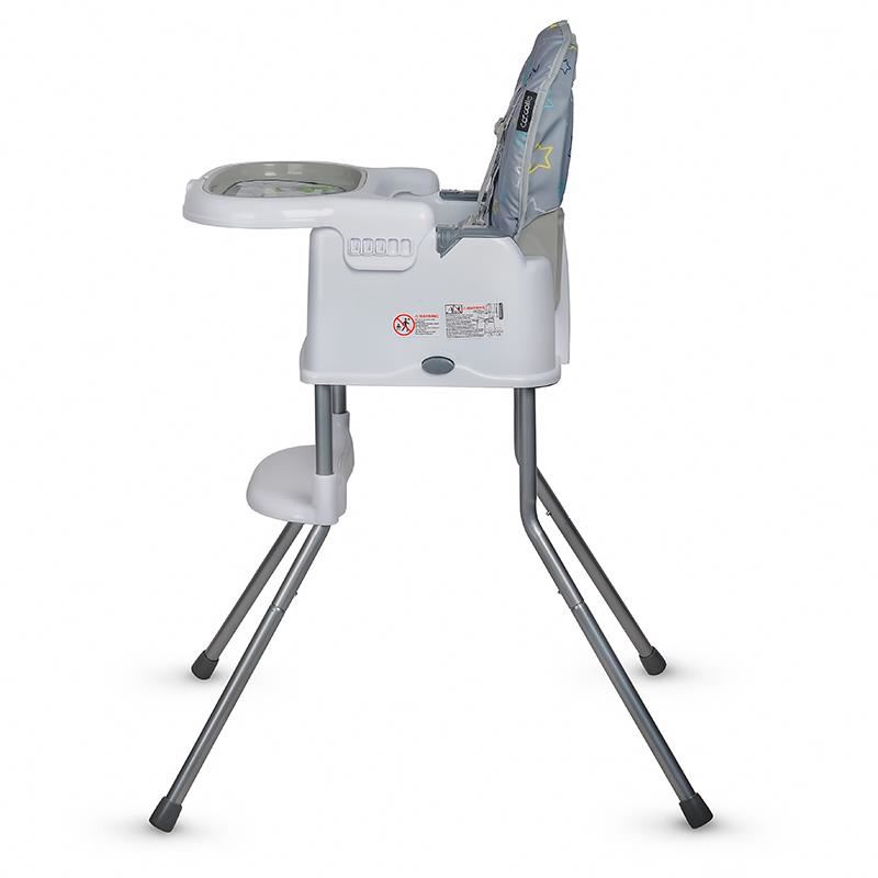 Scaun de luat masa 2in1 pentru copii Coccolle Ziti multifunctional, Cu functie de inaltator, Centuri in 5 puncte, Spatar reglabil in 2 pozitii, Tavita reglabila in 3 pozitii, Dispozitiv anti-alunecare sub tavita, pana la 15 kg, Grey Stars