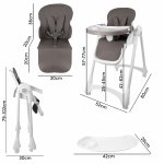 Scaun de masa 2 in 1 pentru bebelusi si copii Malplay Deli grey, model pliabil, tavita dubla detasabila, echipat cu 2 roti