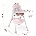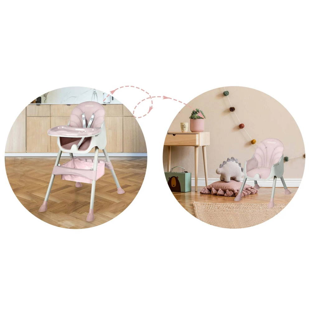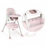 Scaun de masa 3in1 transformabil in scaunel clasic,cu cos de depozitare,baza antiderapanta,masuta reglabila,suport picioare si husa detasabila Ricokids Milo Roz