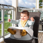 Atunci cand doriti sa luati masa, acasa sau in deplasare, pur si simplu aseaza-l pe un scaun de masa si ataseaza-i hamul de siguranta. Acum poti hrani in siguranta micul explorator.