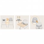 Scaun de masa Lionelo Dalia Gri Stone 2 in 1 transformabil, cu 2 suporturi pentru picioare, tavita detasabila, sustine 60 kg, 6 luni+, conform cu EN14988