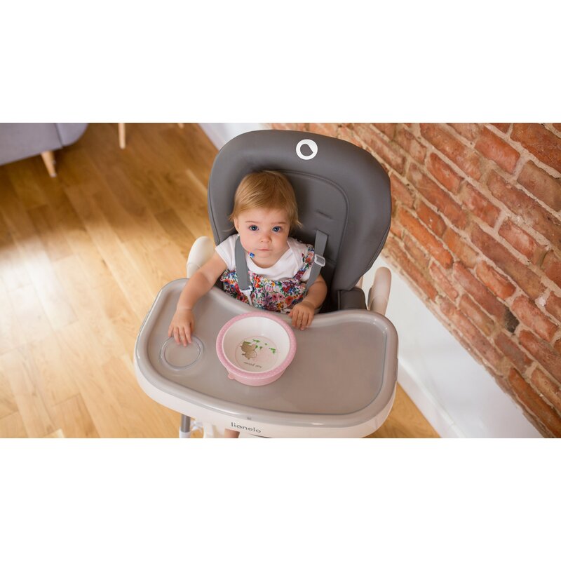 Setul Lionelo Linn Plus include o tava dubla reglabila, a carei parte superioara poate fi indepartata si spalata in masina de spalat vase.