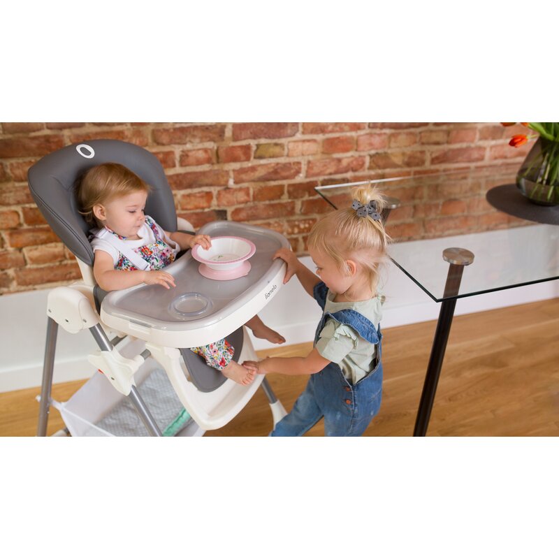 Setul Lionelo Linn Plus include o tava dubla reglabila, a carei parte superioara poate fi indepartata si spalata in masina de spalat vase.