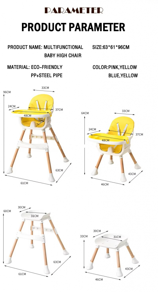 - Un produs multifunctional, datorita posibilitatii de transformare din scaunel de masa, in scaunel clasic pentru podea;