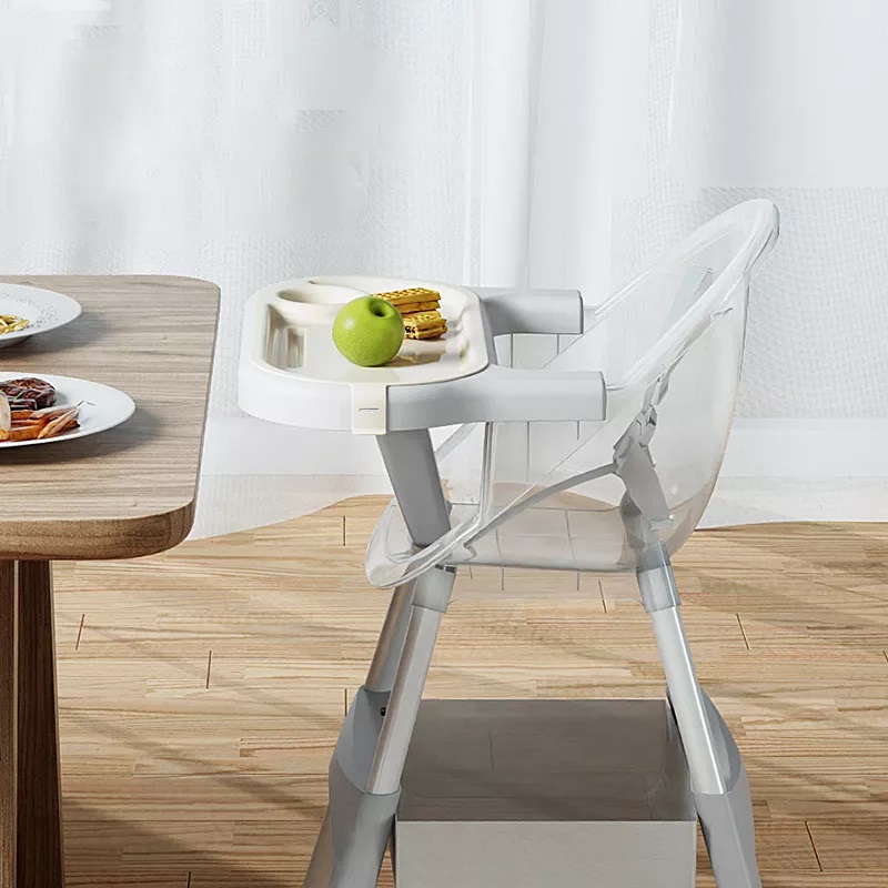 Functionalitatile sale fac hranirea zilnica a copilului mult mai usoara: tavita dubla ajustabila, centuri de siguranta in 5 puncte, husa detasabila din piele ecologica, suport pentru picioare, cos accesorii, picioare cu talpi aderente.