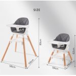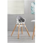 Scaun de masa Little Mom Wooden Gray 2in1 cu margini rotunjite, tava reglabila si detasabila, centura siguranta, varsta 6 luni+, dimensiuni 60x58x87 cm
