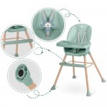 Scaun de masa multifunctional 3in1 Nukido cu utilizare versatila,masuta reglabila si detasabila,husa impermeabila,centuri de siguranta si suport picioare Tilo Verde