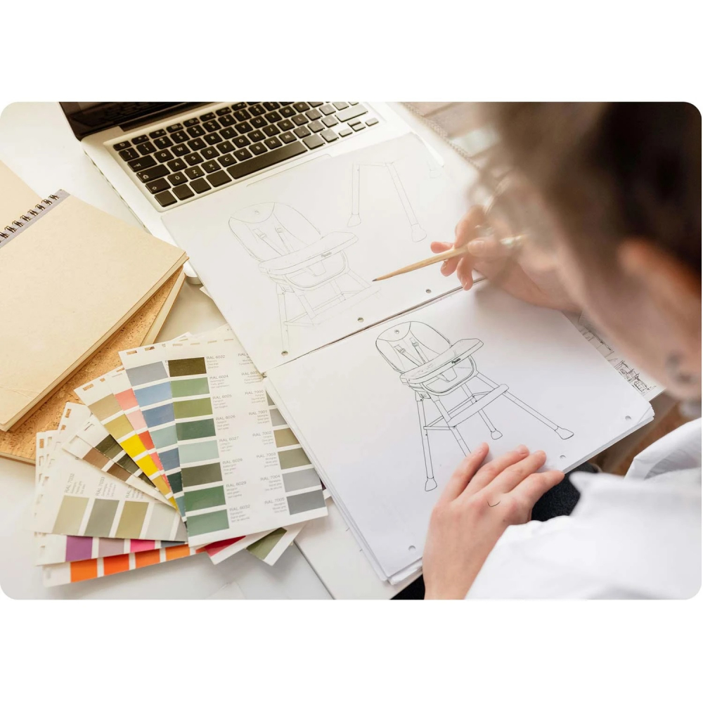 - Sustine o postura buna: Scaunul proiectat cu grija ajuta la mentinerea unei pozitii bune atat in timp ce mananci, cat si cand te joci.