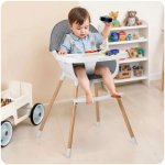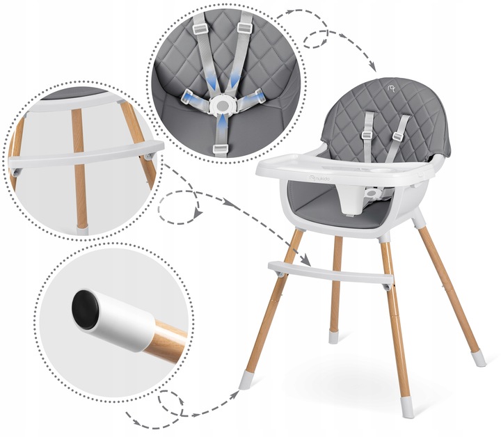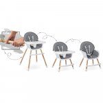 Scaun de masa multifunctional 3in1 pentru copii cu masuta reglabila si detasabila,husa din PU usor de curatat,suport picioare,transformabil in scaunel clasic Nukido Lilo Grey