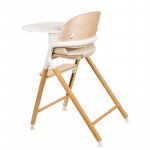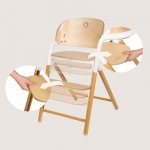Scaun de masa multifunctional Celia Lionelo, din lemn de fag, 6 luni- adult, reglabil pe inaltime, husa impermeabila, tavita silicon, suport de picioare reglabil, greutate maxima 90 Kg, Alb/Natural