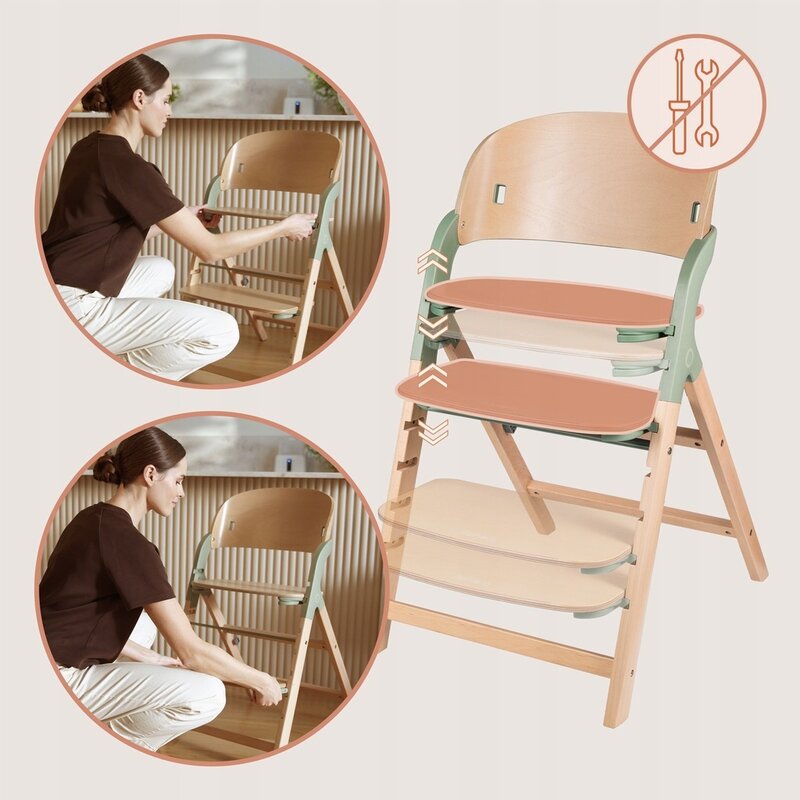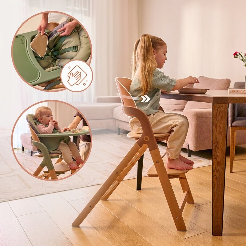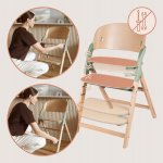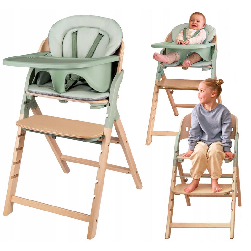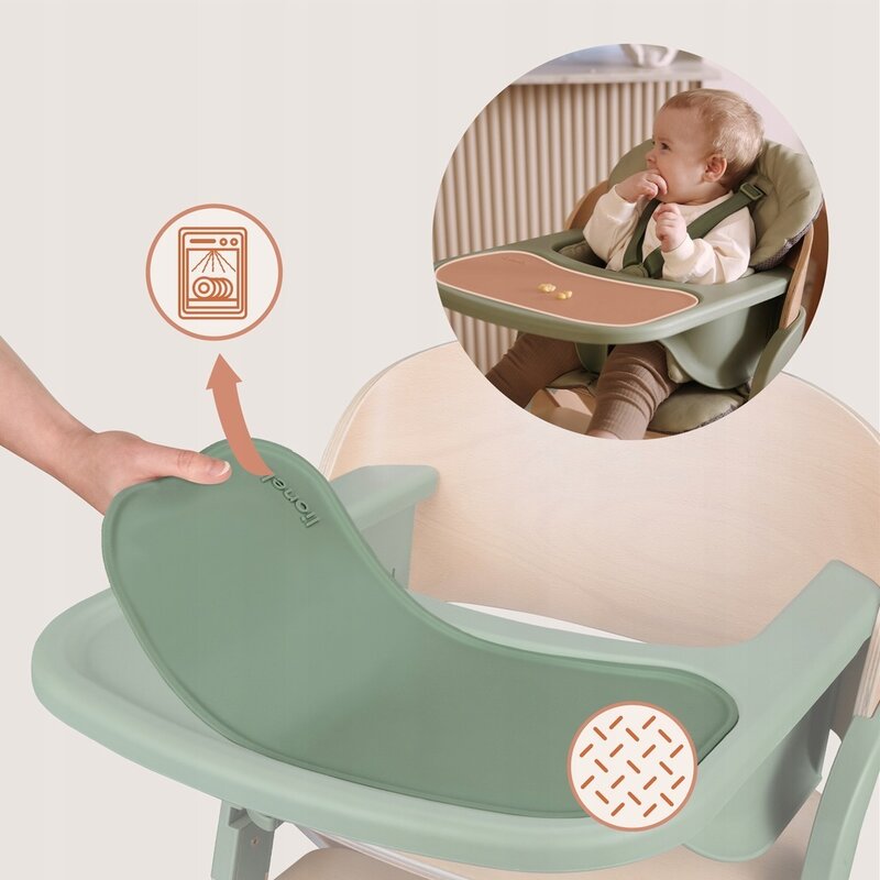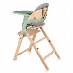 Scaun de masa multifunctional Megan Lionelo, din lemn de fag, 6 luni- adult, reglabil pe inaltime, husa impermeabila, tavita silicon, suport de picioare reglabil, greutate maxima 110 Kg, Verde