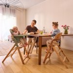 Scăunelul are înălțimea potrivită pentru mesele standard, astfel încât oricine – indiferent de vârstă (chiar și cel mai mic membru al familiei) – va putea participa confortabil la mesele comune.