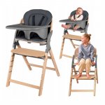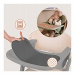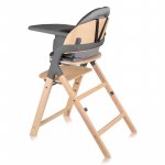 Scaun de masa multifunctional Megan Lionelo, din lemn de fag, 6 luni- adult, reglabil pe inaltime, husa impermeabila, tavita silicon, suport de picioare reglabil, greutate maxima 110 Kg, Gri