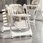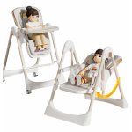 Scaun de masa pentru bebelusi Little Mom Grey, pliabil, multifunctional cu functie de balansoar, spatar reglabil, centura de siguranta si suport pt picioare, design ergonomic, structura piramidala cu roti, 61.5 x 83 x 98 cm