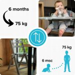 Inaltimea reglabila a scaunului si a suportului pentru picioare va permite sa reglati scaunul la copil in fiecare etapa de dezvoltare.