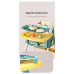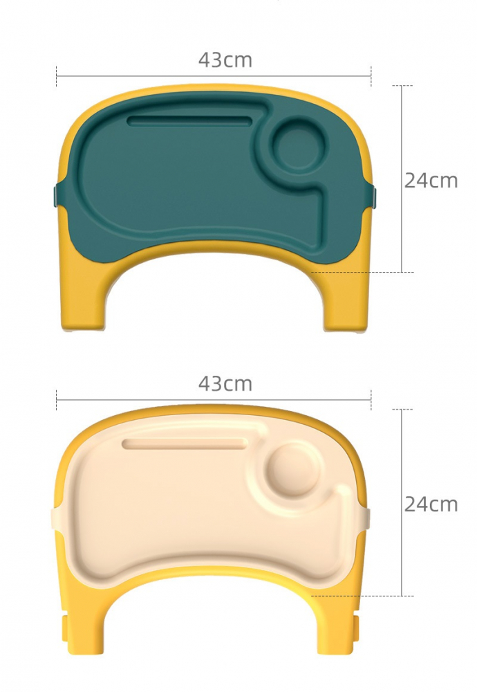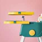 - Tavita dubla ajustabila devine un spatiu personalizabil pentru fiecare etapa a mesei, oferind un loc sigur pentru boluri si farfurii, iar stratul superior se poate indeparta cu usurinta pentru o igienizare impecabila.