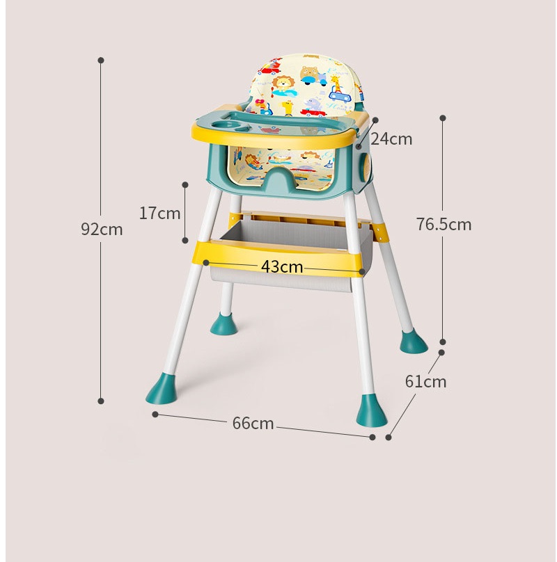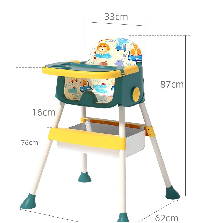Scaun de masa pentru copii Little Mom Jungle Green pliabil, transformabil 2 in 1, cu tavita dubla reglabila in 3 pozitii, cos de depozitare, dimensiune 66 x 62 x 87 cm,