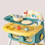 - Aspectul elegant si jucaus stimuleaza imaginatia, iar tavita dubla reglabila se adapteaza nevoilor fiecarei mese.