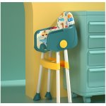 - Sub scaun, un cos textil devine un depozitar magic pentru bavete, servetele sau chiar jucariile preferate, transformand tranzitia de la masa la joaca intr-o clipa.