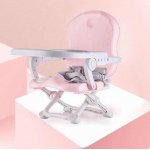 Scaun de masa pentru copii, Little Mom, model tip booster, design compact, pliabil si portabil, inaltime reglabila 4 pozitii, tavita detabila, compatibilitate universala, dimensiune 50 x 30 x 35 cm, Pink