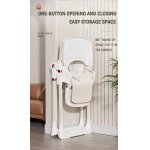 - Cu o simpla miscare, scaunul se pliaza si devine extrem de compact, fiind usor de depozitat intr-un dulap, sub pat sau in orice alt spatiu disponibil.