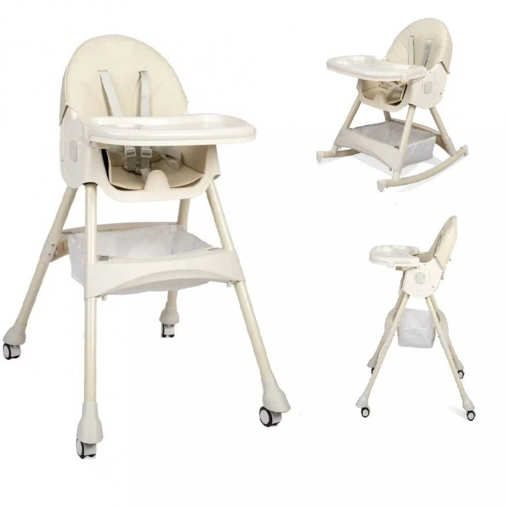 Scaun de masa multifunctional 3 in 1 Little Mom , este un scaun versatil, care se poate transforma usor, de la un scaun de masa pentru bebelusi, la un balansoar iar mai apoi cand copilul va creste in scaunel clasic.