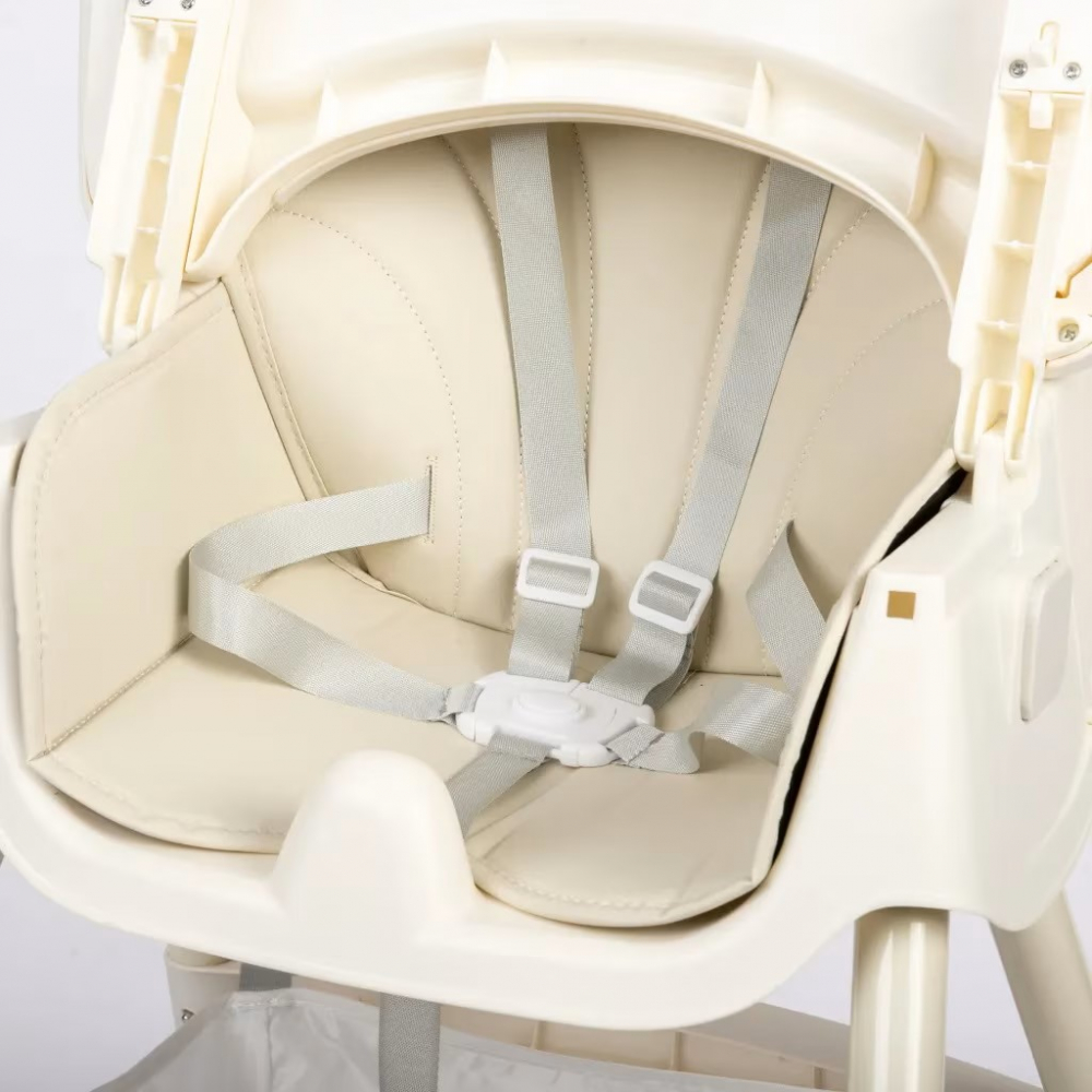 Scaun de masa pliabil pentru bebelusi Little Mom 3 in 1 Funny Cream cu roti si functie de balansoar, multifunctional, centura de siguranta 5 Puncte, ajustabil pe inaltime, cos de depozitare, husa detasabila