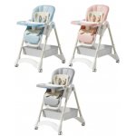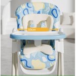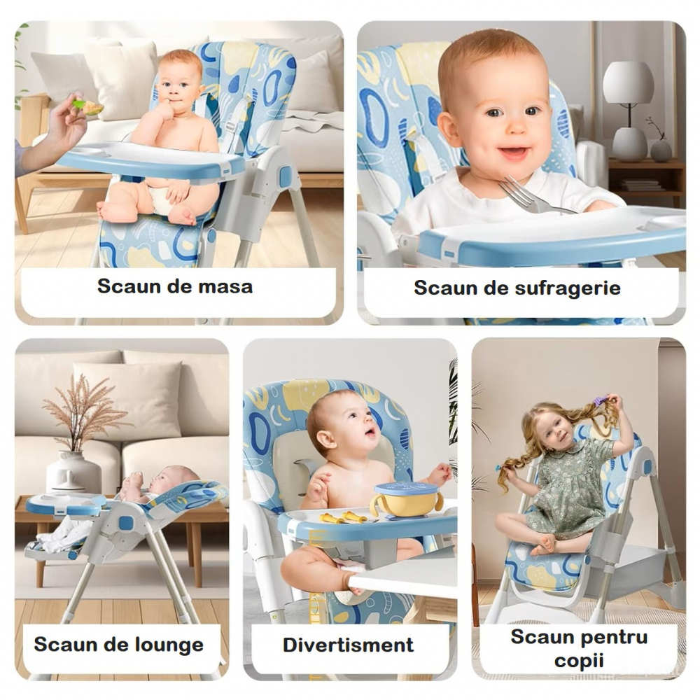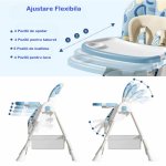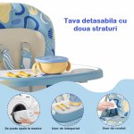 Scaun de masa pliabil pentru bebelusi Little Mom Blue, cu reductor dublu, varsta 6-36 luni, spatar reglabil in 4 unghiuri distincte, cu roti si cos pentru accesorii, inaltime ajustabila, centura de siguranta 5 Puncte