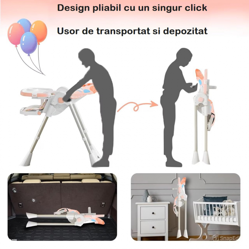 Scaunelul este potrivit pentru copiii incepand cu varsta de peste 6 luni, si poate fi o varianta foarte convenabila pentru parinti de a-si hrani copii;