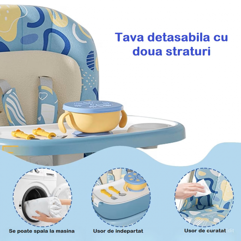 Acest scaunel este un accesoriu necesar pentru orice familie cu copilasi mici, usurandu-le semnificativ eforturile de a-i hrani;
