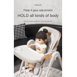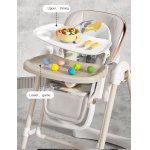 Scaun de masa pliabil pentru bebelusi Little Mom, multifunctional, cu roti, functie balansoar, cu spatar reglabil in 4 unghiuri distincte, inaltime ajustabila si centura de siguranta 5 puncte, varsta 6-36 luni, Grey