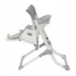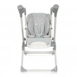 -Spatarul scaunului este reglabil in 4 pozitii diferite de inclinare, atunci cand este folosit ca scaun de masa, si in 2 pozitii diferite de inclinare, atunci cand este folosit ca leagan.