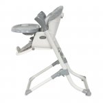 - Masuta frontala prevazuta cu 2 tavite detasabile: una pentru servit masa cu forma speciala pentru suport pahar/biberon, si cealalta pentru joaca – cand este folosit ca scaun de masa.