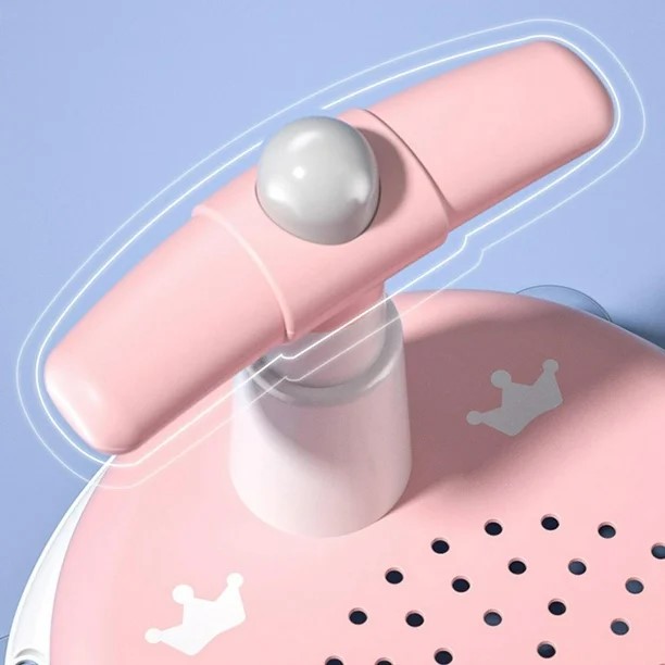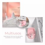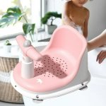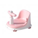 Scaunel de baie pentru copii Little Mom Baby Crown Pink, design ergonomic cu spatar, cu husa detasabila din cauciuc, cu ghidon de sustinere si Claxon, dimensiune 20 x 30 x 36 cm