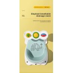 - Perforatiile faciliteaza drenajul eficient al apei, reducand riscul de alunecare si mentinand un nivel optim de igiena. Textura husei contribuie la stabilitatea micutului utilizator.