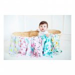 - Durabilitatea este un alt avantaj al tesaturii din bambus. Rezistent la umezeala, la schimbarile de temperatura si cute, scutecul isi pastreaza mult timp caracterul unic, fiind un insotitor de incredere in ritualurile zilnice de ingrijire.