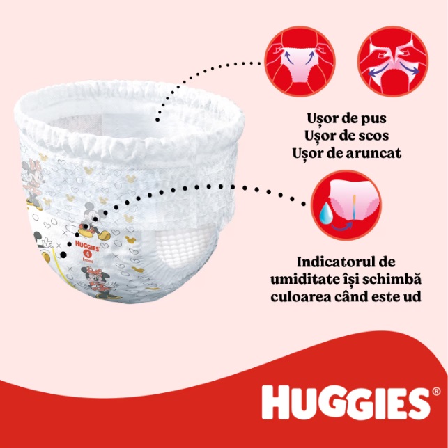 Noile scutece tip chilotei Huggies, cu o banda in talie elastica, moale „ca un norisor”, au devenit si mai confortabile pentru bebelusii care se misca activ.