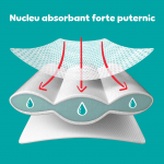 De asemenea, au un nucleu superabsorbant care absoarbe umezeala instantaneu si mansete duble pentru picioare ce ajuta la prevenirea scurgerilor in jurul picioarelor.