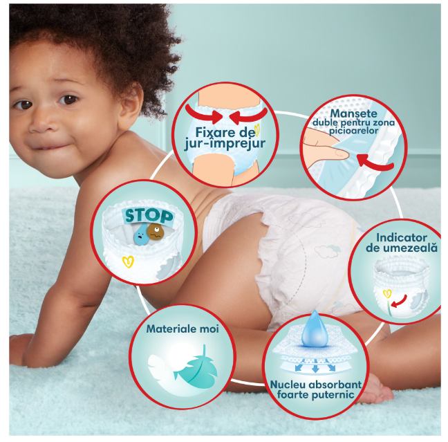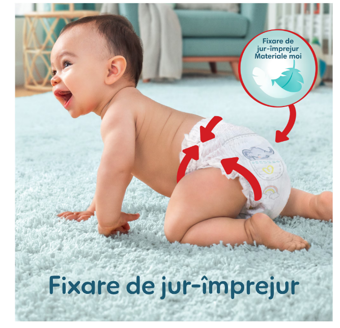 Piele rasfatata datorita materialelor moi ce ofera cea mai delicata atingere Pampers.