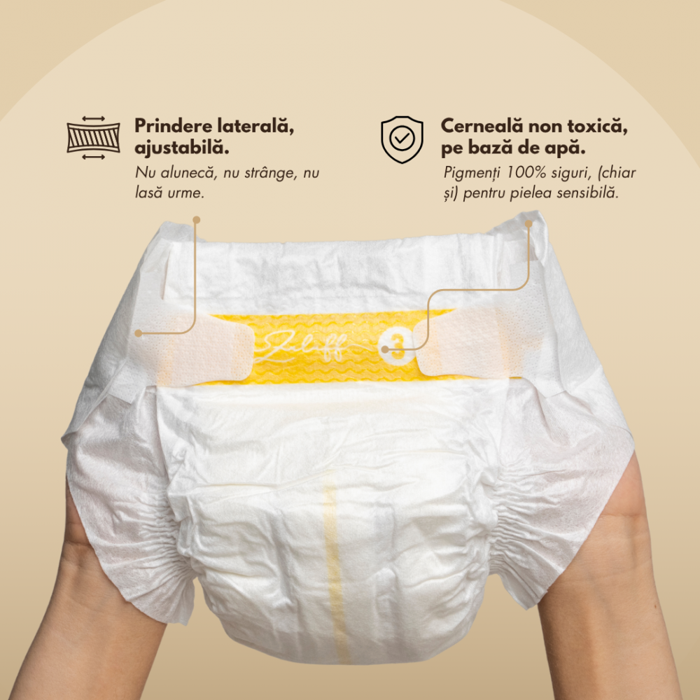 Zuluff e imaginat și proiectat în România, e singură marca înregistrată românească de scutece refolosibile.