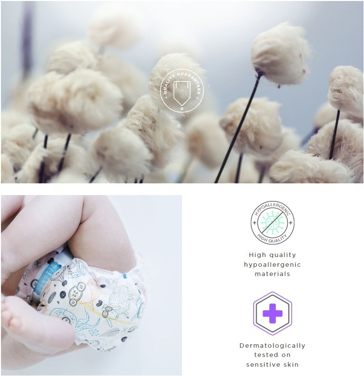 Scutecele si produsele pentru bebelusi sunt produse in Grecia din materiale naturale testate hipoalergenic.