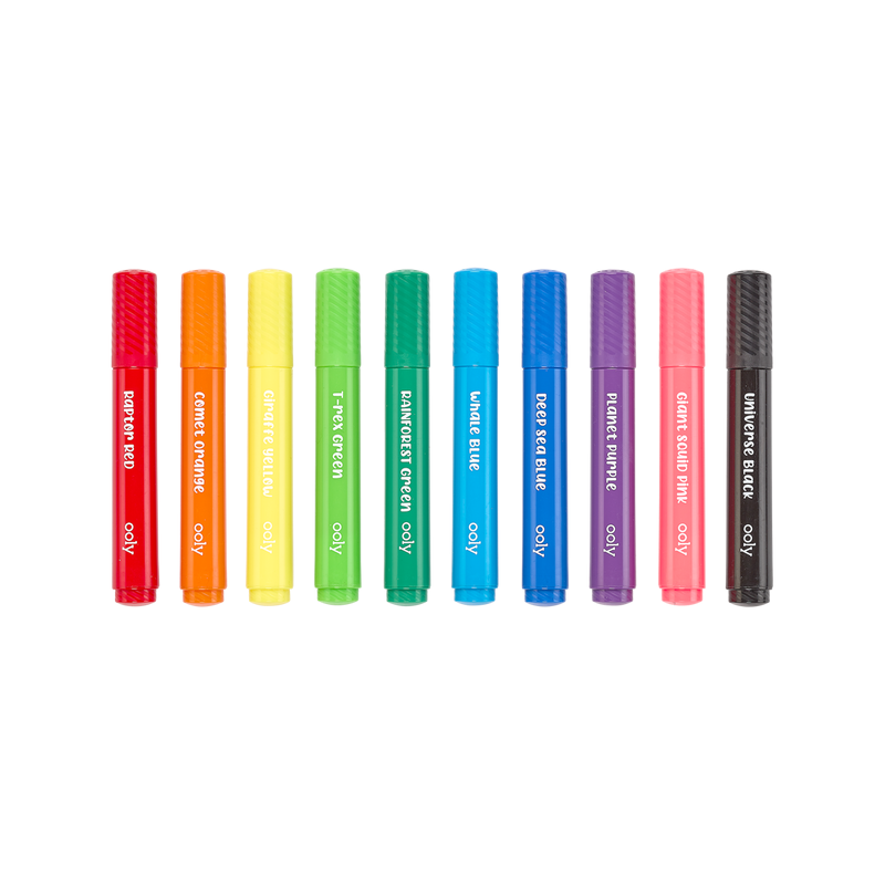 Cariocile pentru copii cu vârfuri în formă de pensulă le permit micilor artiști să deseneze atât linii subțiri, cât și groase.