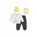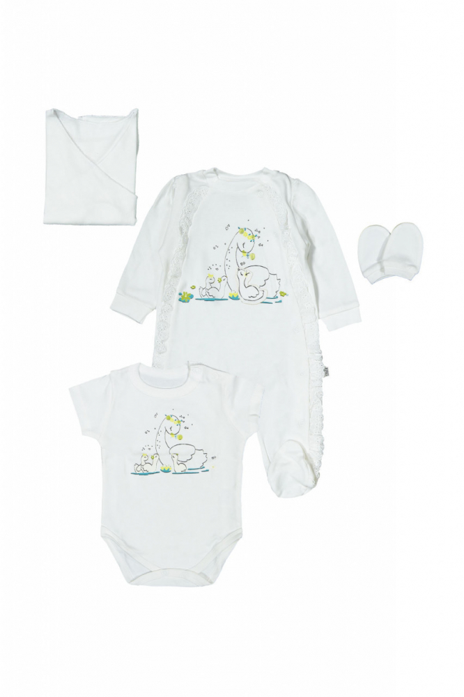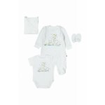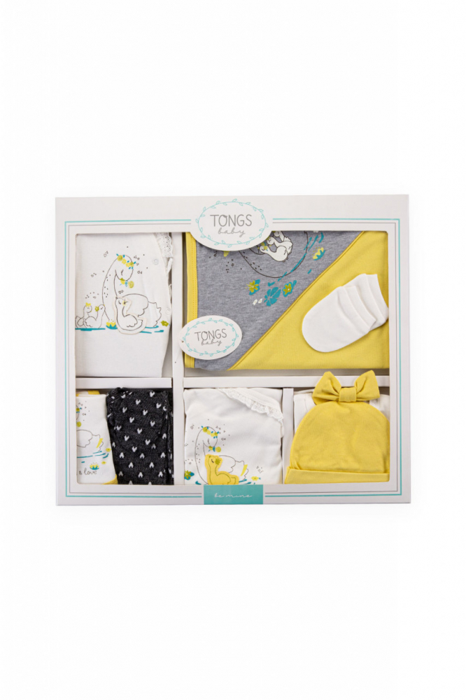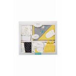 Este un set ce contine toate piesele necesare pentru primele luni de viata sau, de ce nu, pentru scoaterea din spital a nou-nascutului, fiind ambalat intr-o frumoasa cutie ce poate fi oferita ca si cadou: