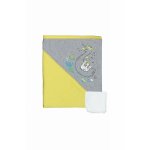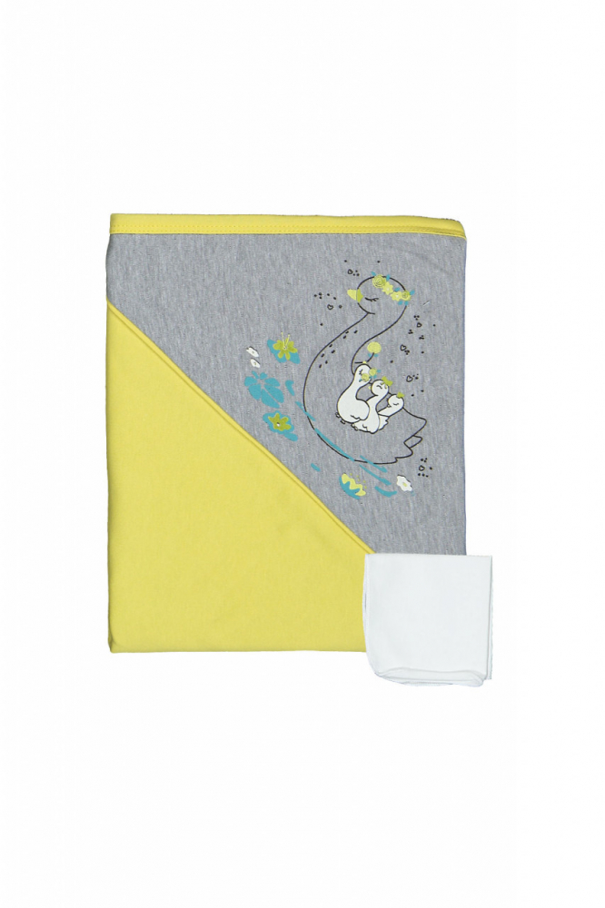 - Pled de bumbac galben cu gri cu imprimeu dragalas cu lebada cu pui,